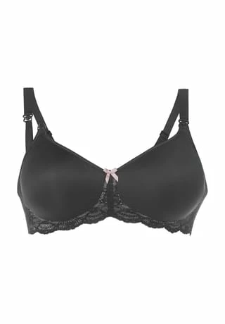– Still-BH ohne Bügel – Material aus 77% Polyamid, 10% Elasthan, 7% Polyester und 6% Polyurethan – leicht zugängliche Clip-Einstellung – gemoldete Cups – gepolsterte Komfort-Träger – Cups in Größe B-G – glatte Cups mit Spitze am Unterbrustband – Farbe: Schwarz