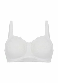 Optimalen Halt ganz ohne Bügel verspricht dieser feminine BH der Linie Moments mit eleganter Blüten-Stickerei. Seine 3-geteilte Form mit integrierter Cupblende stützt die Brust und formt ein weiblich-volles Dekolleté. Bügellos Akzentuierte Formung Mittelträger ist elastisch und längenverstellbar U-förmiger Rücken Perfekte Passform durch dreiteiliges Cup Trägerbreite, Rücken und Mittelsteg angepasst an den Größenverlauf Seitliche Cupstütze geht direkt in den breiten Träger über Seitliches Formstäbchen für perfekten Halt 3-fach verstellbarer Soft-Seal Haken-Ösen-Verschluss Leicht gläntzende Blütenstickerei mit hochwertigem Abschlussband Dekorative Zierschleife