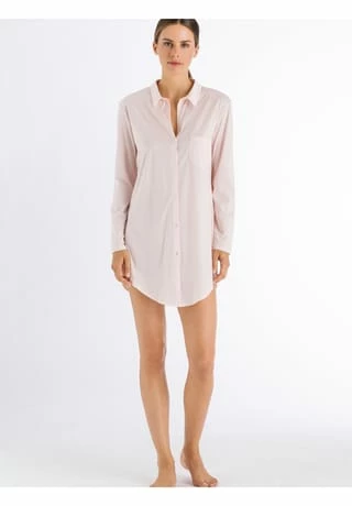Nachthemd im Hemdblusen-Stil aus weicher mercerisierter Baumwolle in Single Jersey Qualität, die sich wunderbar angenehm auf der Haut trägt. Es überzeugt außerdem durch eine raffinierte Rückenfalte, Brusttasche und seinem lässigen Boyfriend-Look.