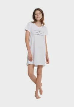 Uncover By SCHIESSER Damen Nachthemd – 1/2 Arm, V-Ausschnitt, Sleepshirt, Muster Blau/ Weiß
