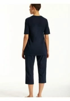 Uncover By SCHIESSER Damen Schlafanzug Set Kurz, 2-tlg. – 1/2 Arm, 3/4 Hose, V-Ausschnitt Dunkelblau