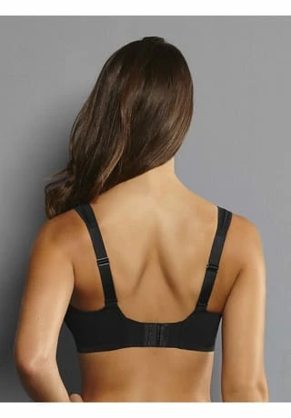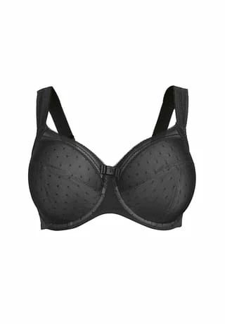 – Bügel-BH für große Cups – vierteilige Cups – blickdichter Punktetüll – transparente Spitze am Obercup – Zierelement am Mittelsteg – breite, längenverstellbare Träger – besonders breiter, verstellbarer Häkchenverschluss am Rücken – hohe Stützfunktion