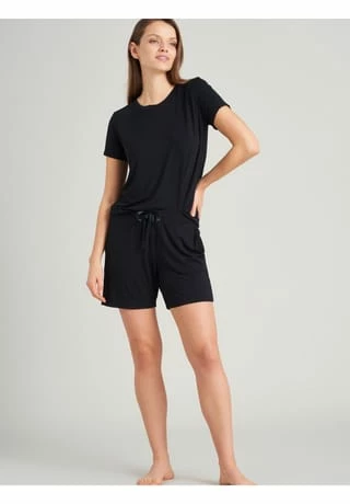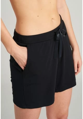 Ein Basic, das in keinem Kleiderschrank fehlen sollte! Diese kurze Damenhose sieht mit ihrem klassischen Design einfach nur gut aus. Komfort versprechen der elastische Bund mit edlem Satin-Bindeband und die lässigen, seitlichen Eingrifftaschen. Das Highlight ist die wunderbar softe Single-Jersey-Qualität aus Modal und einem Hauch Elasthan. Das Material fällt fließend leicht, ist atmungsaktiv und pflegeleicht. Beste Qualität zum Mixen und Relaxen!